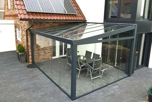Mit über 70 Mitarbeitenden liefern wir jährlich mehr als 1.500 Überdachungen, 1.000 Sonnenschutzanlagen und über 60.000 m² VSG.