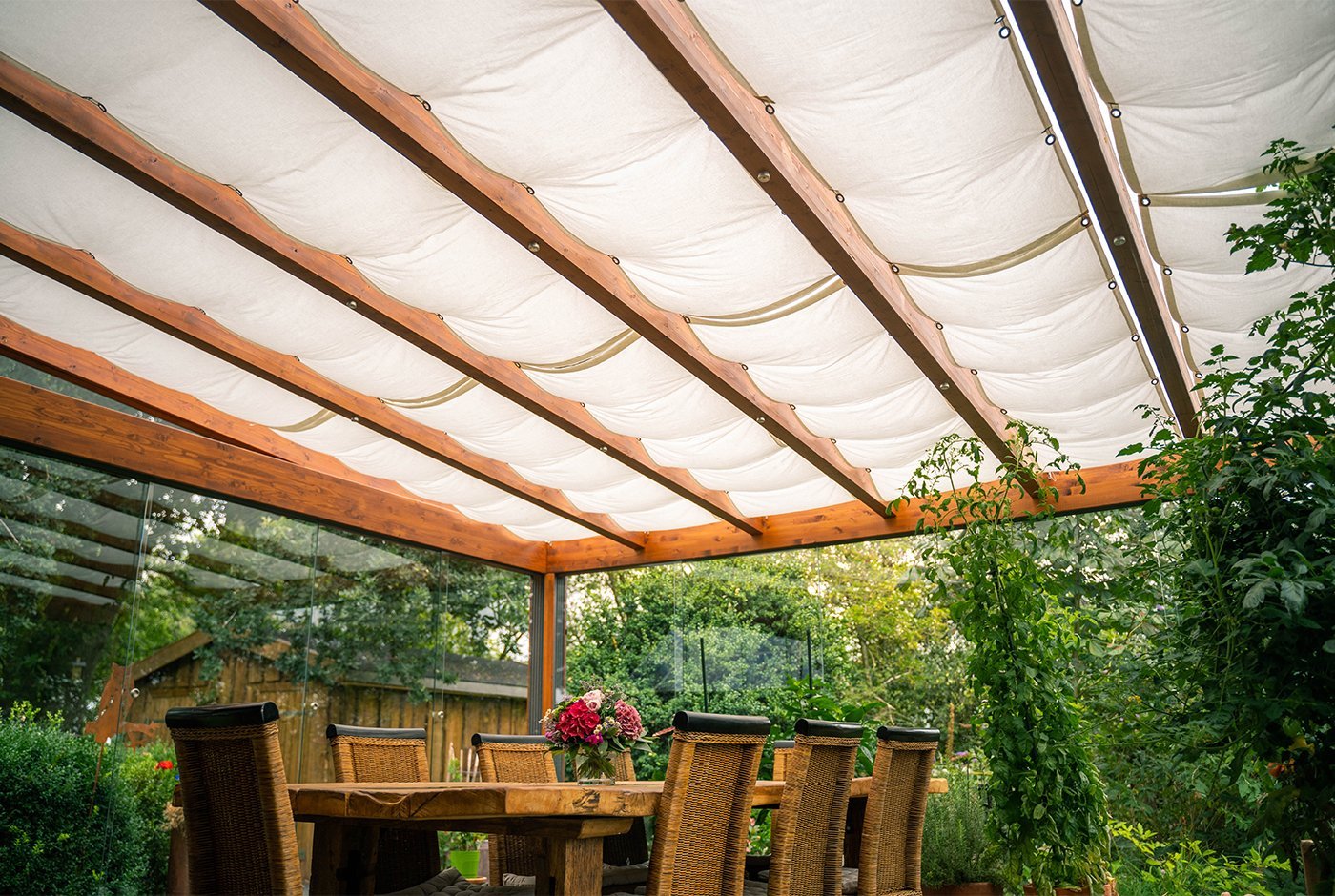 Mit unseren Seilspannmarkisen hast du die Möglichkeit einzelne Felder deiner Überdachung zu beschatten