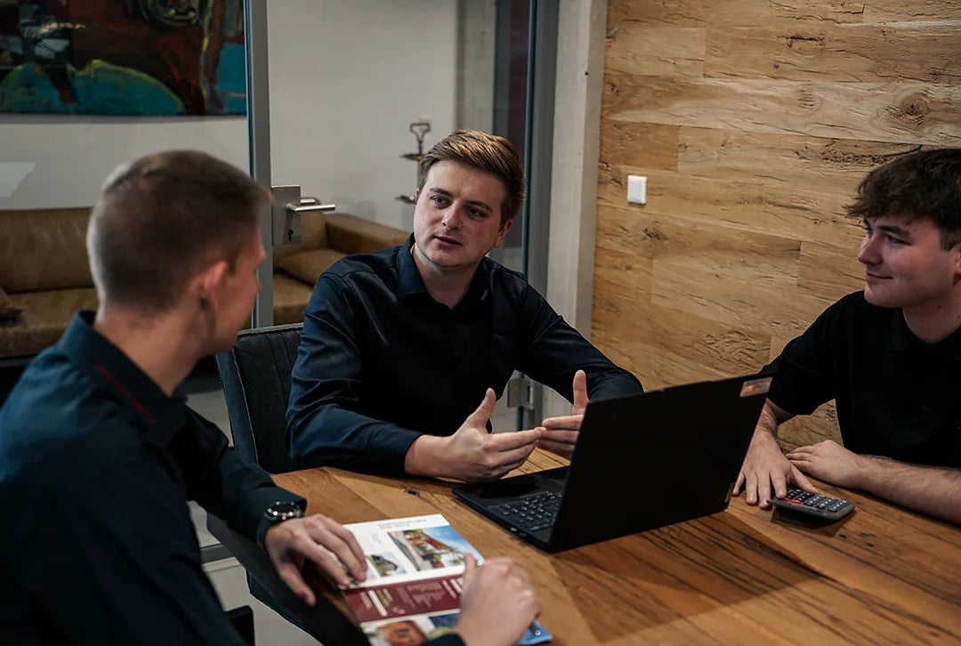 Das Team aus der Buchhaltung überwacht die Einnahmen und Ausgaben der steda GmbH.