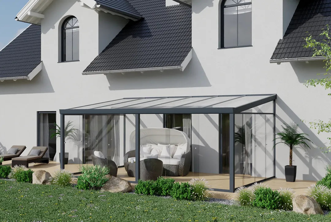 Die Glasstärke der Seiten- und Schiebewände beträgt 8 mm. Hergestellt aus langlebigem Aluminium ist dieser Kaltwintergarten die ideale Wahl für alle, die einen geschützten und stilvollen Rückzugsort im Freien schaffen möchten. Ob als Ort für gesellige Stunden, zur Überwinterung von Pflanzen oder als Erweiterung deines Wohnraums – dieser Kaltwintergarten ist vielseitig einsetzbar.