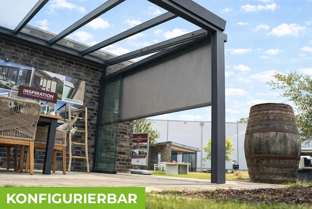 Senkrechtmarkisen eignen sich vor allem als Sonnenschutz für Terrassen mit großen und hohen Glasfronten. Hier ist der Raum meist einer starken Sonneneinstrahlung ausgesetzt und neigt zur Überhitzung. Senkrechtmarkisen ermöglichen neben dem Sonnen-, Blend- und Windschutz eine konstante und komfortable Erhaltung der Temperatur.