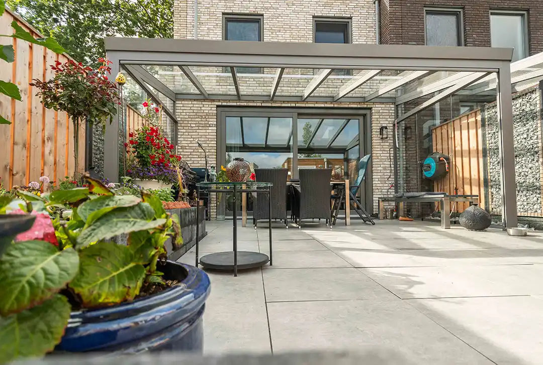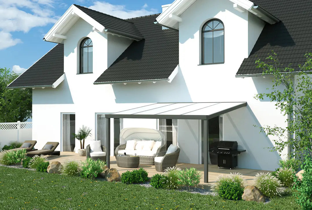 – diese Terrassenüberdachung erfüllt alle Anforderungen.