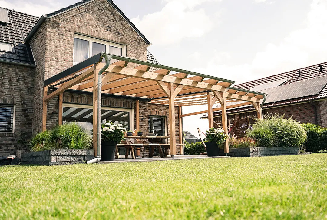 Deine individuelle Terrassenüberdachung aus Leimholz – passgenau, hochwertig, vielseitig
